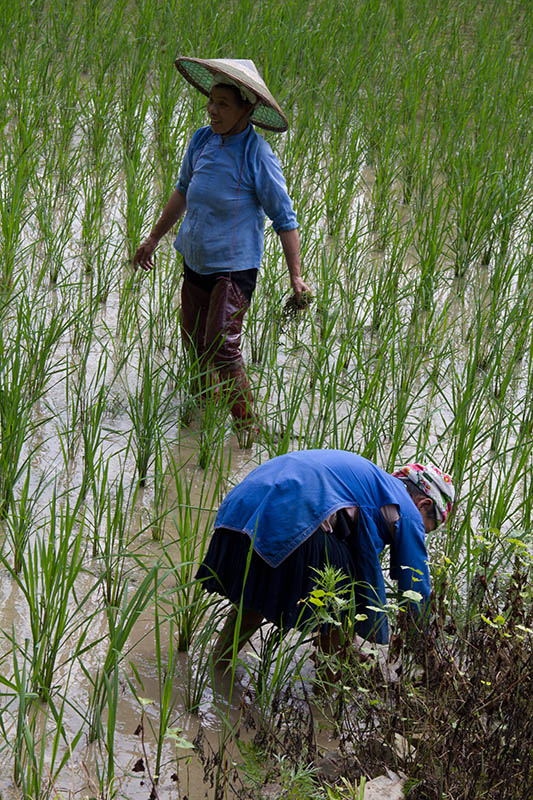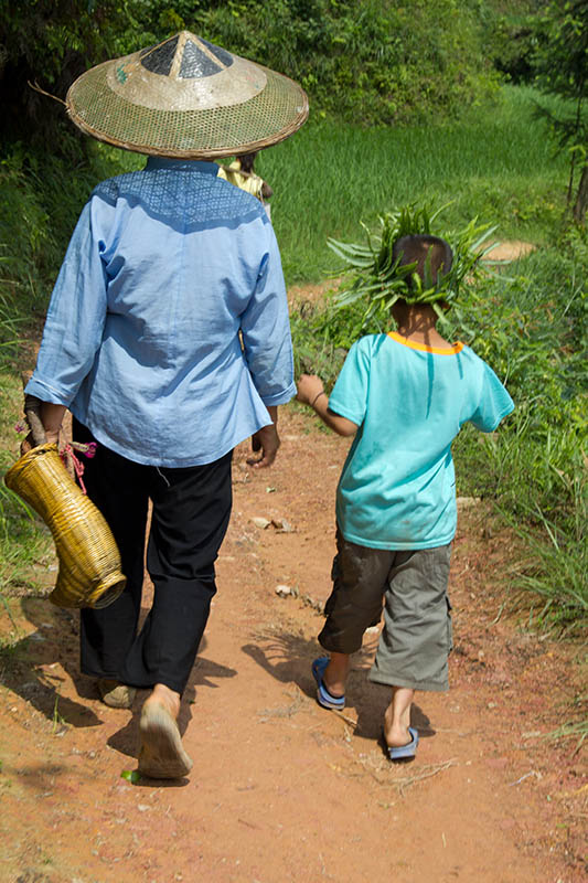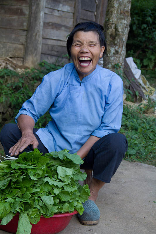 The za, or elderly women, have worked since early morning till late at night every day for their whole lives. They’re lean but can carry loads heavier than they are and do not tire easily. They can walk for hours through steep mountain paths in slippery plastic shoes, break their backs weeding rice or hoeing vegetables, and then haul firewood or vegetables for dinner back to the village in the evening. They can stay up late up working on whatever craft task is in season.