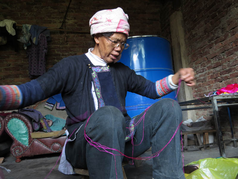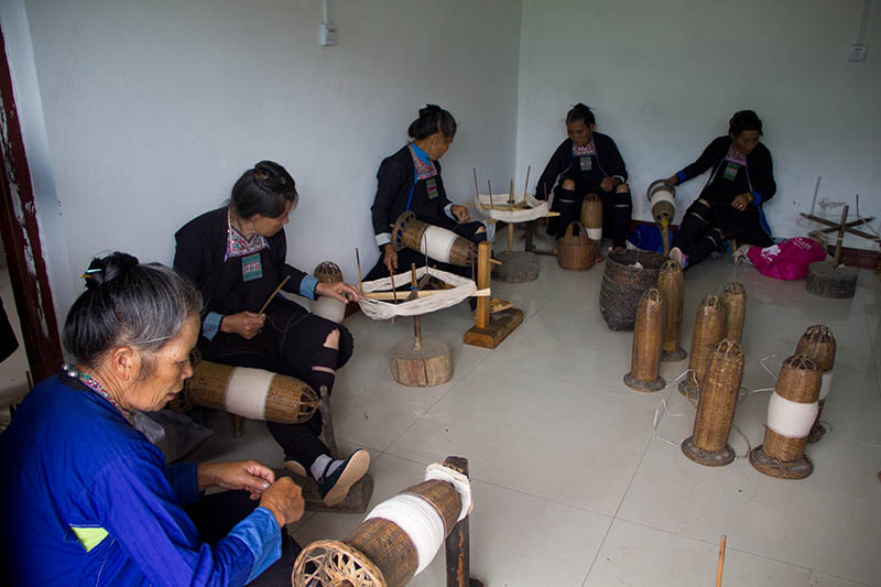 The 2014 Holiday production was overseen by Joyce Huang from the Dimen Eco Museum. Wu Mengxi, who has been a key point person in the village throughout the who Kam Heritage Project, has taken the role of the lead artisan. Besides developing early prototypes through collaboration with Lee and Huang, Wu has created many of the products and recruited her friends for the cooperative.