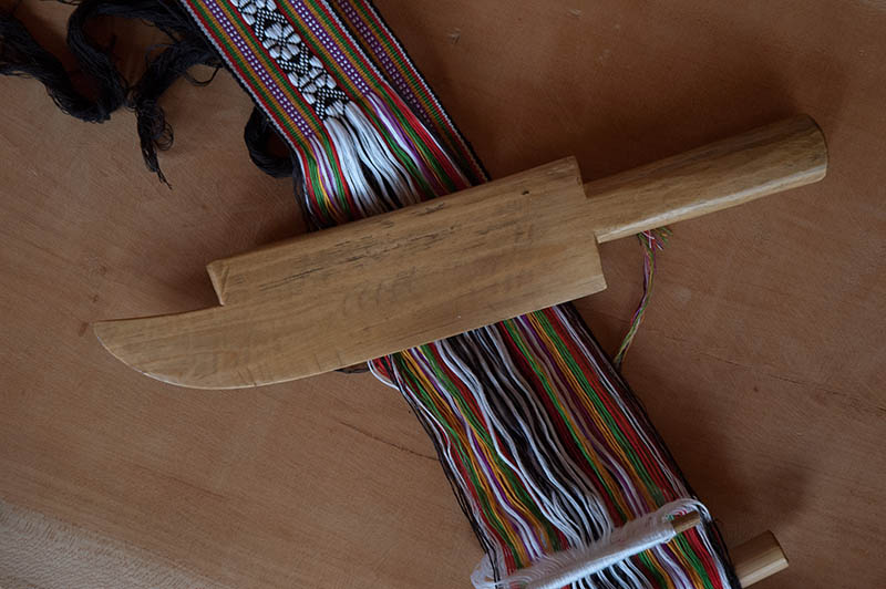 Dimen women weaving flower belts on backstrap looms
