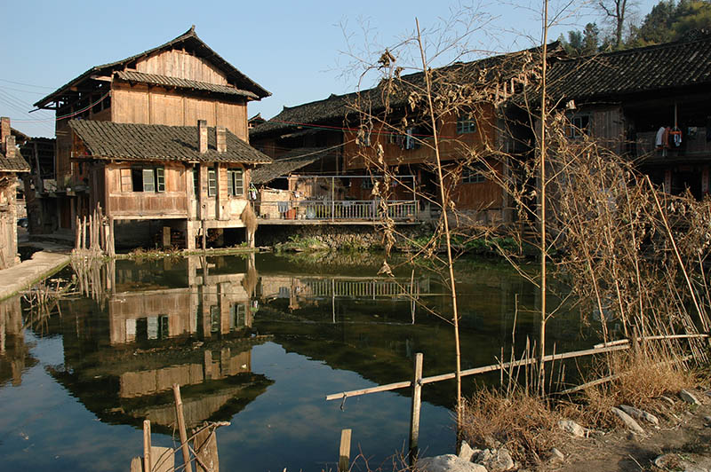 Dimen is larger than average in Kam standards in which two to three hundred households often constitute a village. In Dimen, there are about twenty-one hundred people living in five hundred and twenty households. There used to be thirteen hundred households at one point, but many people migrated to surrounding areas and founded new villages. The name Dimen means spring so it takes on a new significance as a place of origin from which the other villages have sprung.