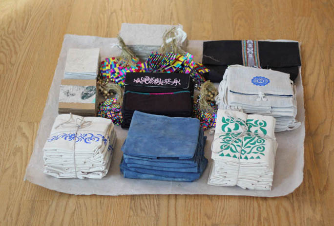 Rooted in local aesthetics, the products merge contemporary design with tradition. They are hand- crafted from local materials with utmost care, each piece getting an individualized treatment by the artisan as she reflects on the unique properties of the material. The fabric is handmade on a traditio-nal wooden loom and then hand-dyed with local plants following the traditional and often time-consuming procedures that have been passed down from mother to daughter for centuries.