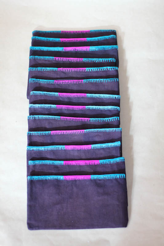 As a result of the weaving and dyeing process, the fabric is very strong and durable. A subtle fragrance of herbs lingers in the fibers. As part of their tradition, the artisans use local sources, and reuse and recycle materials whenever possible.