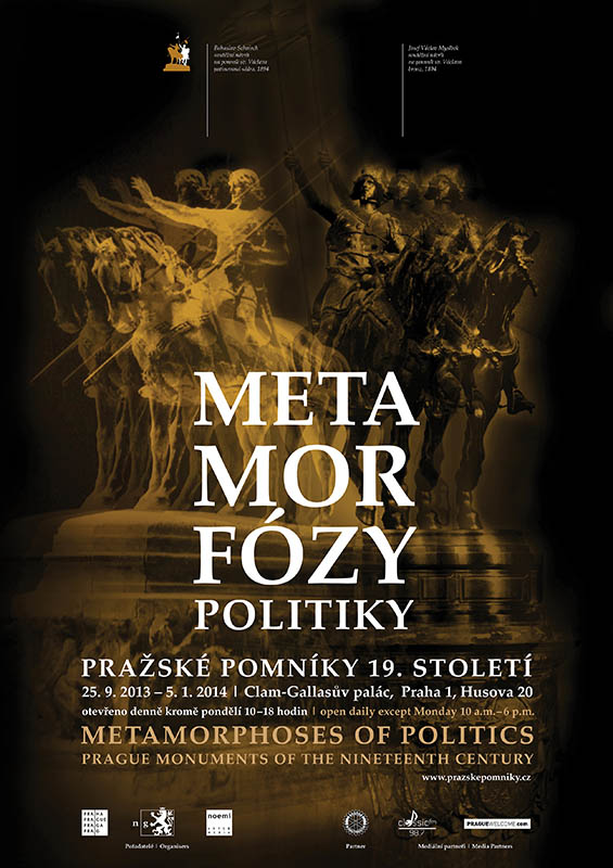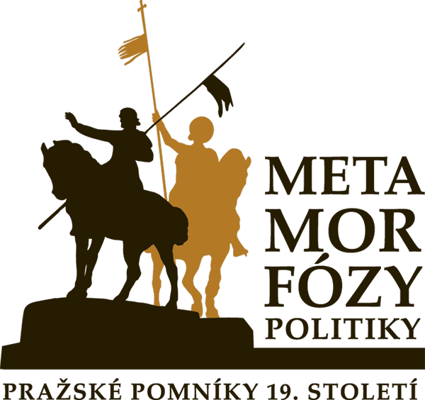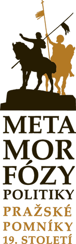 The logo represents two competitive models for the statue of st. Wenceslas, the patron of the Czech nation, that were submitted to a national competition in 1894 and are emblematic of the political intrigues of the period. Black and bronze colors reflect the materials of choice for monuments in the 19th century. Palatino Bold typeface points towards the humanistic leanings of the Czech 19th Century art and culture.