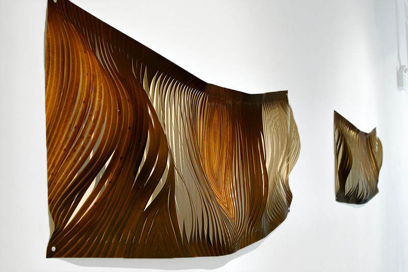 EarthDreams contemplates the natural beauties of three continents that I consider home: Europe, Asia and North America. Dirt, rocks, rusty objects, tree bark and statues receive a new life through surgical incisions that allow light to shine through. The light overflows the inner space of the objects and spills into the viewer’s world. The cuts, sometimes poetic, and at other times merciless, underline the beauty of the objects and while at the same time sketch out likenesses borrowed from this world as well as the one of fantasy. Descriptive titles that suggest the location of the original photograph bring the viewer back into reality. Some of the photographs come from the château’s grounds and the viewers can visit the original location to compare their reality to mine. I exhibited ten large-scale wall pieces and fourteen lamps.